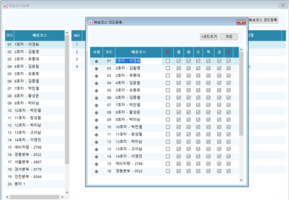 - 가맹점 하나에. 중복 배송코스 적용 가능