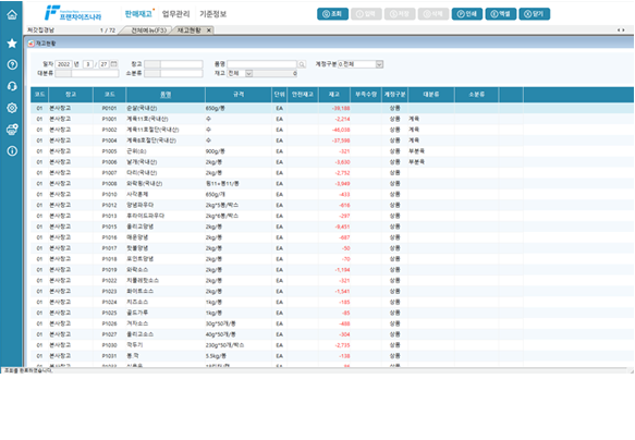 재고현황 / 상세수불현황 / 이월재고입력 /
